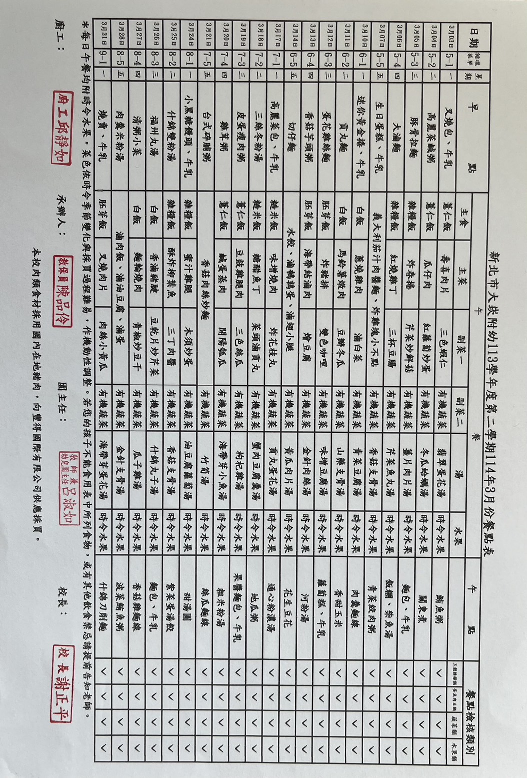113-2大崁附幼3月份餐點表 - 多元、適性、全人、關懷