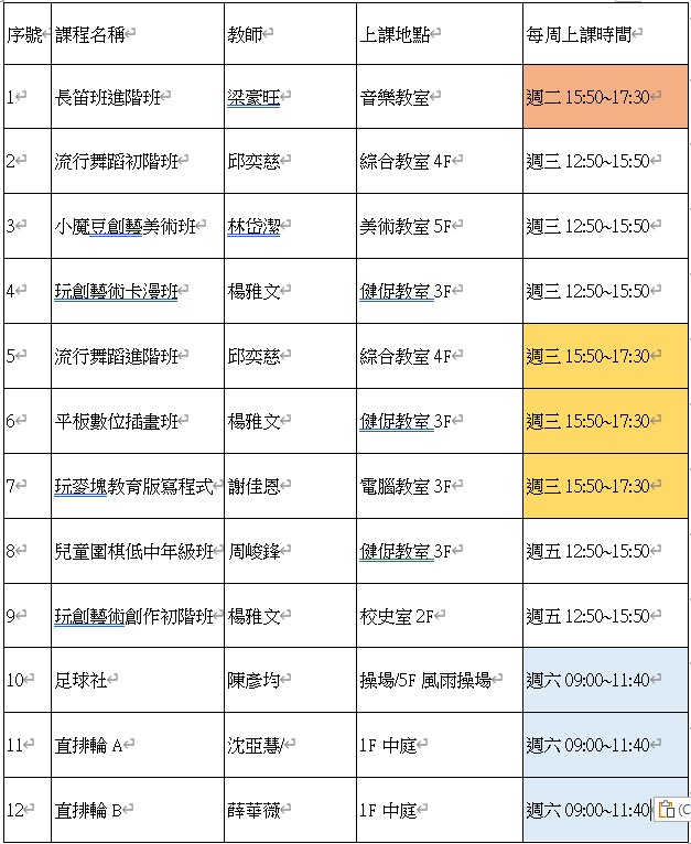 1.開課時間:下學期課後社團將於115/3/3(二)起至115/6/27(六)結束上課。